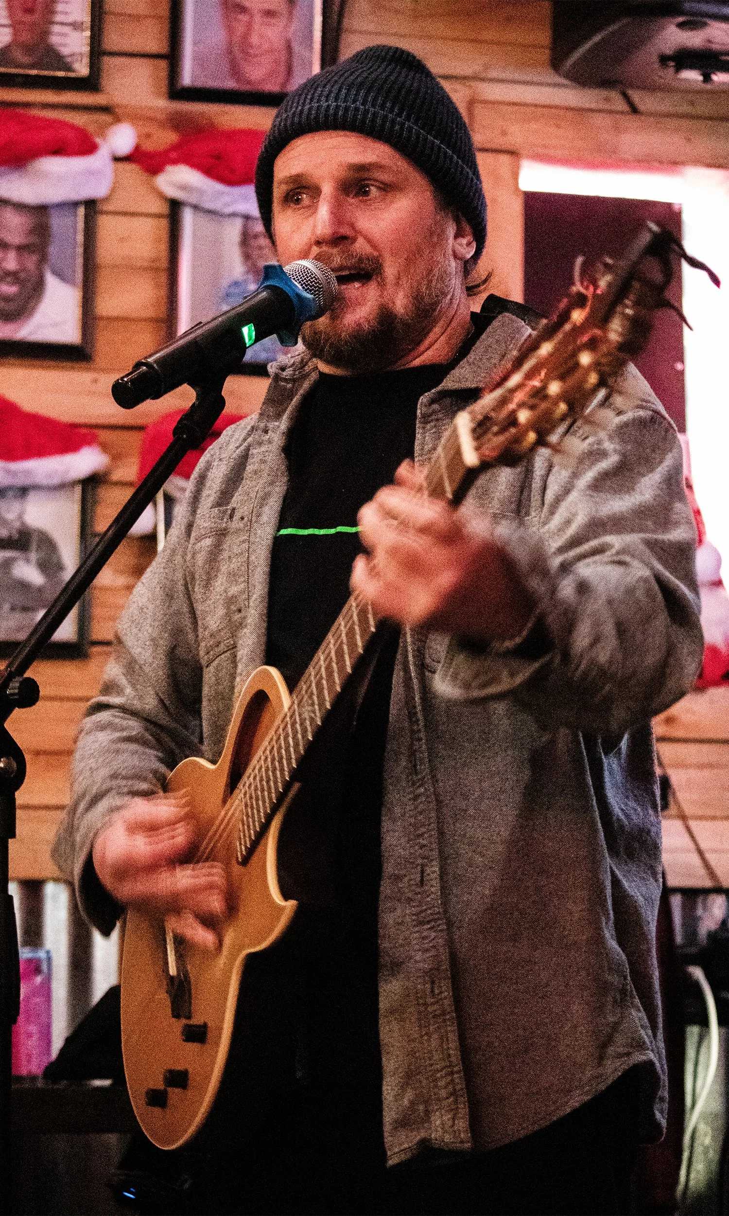 Nate Vaill, of A Band Named Ashes, performing at The Rialto Theatre’s annual holiday party. Akron, Ohio.